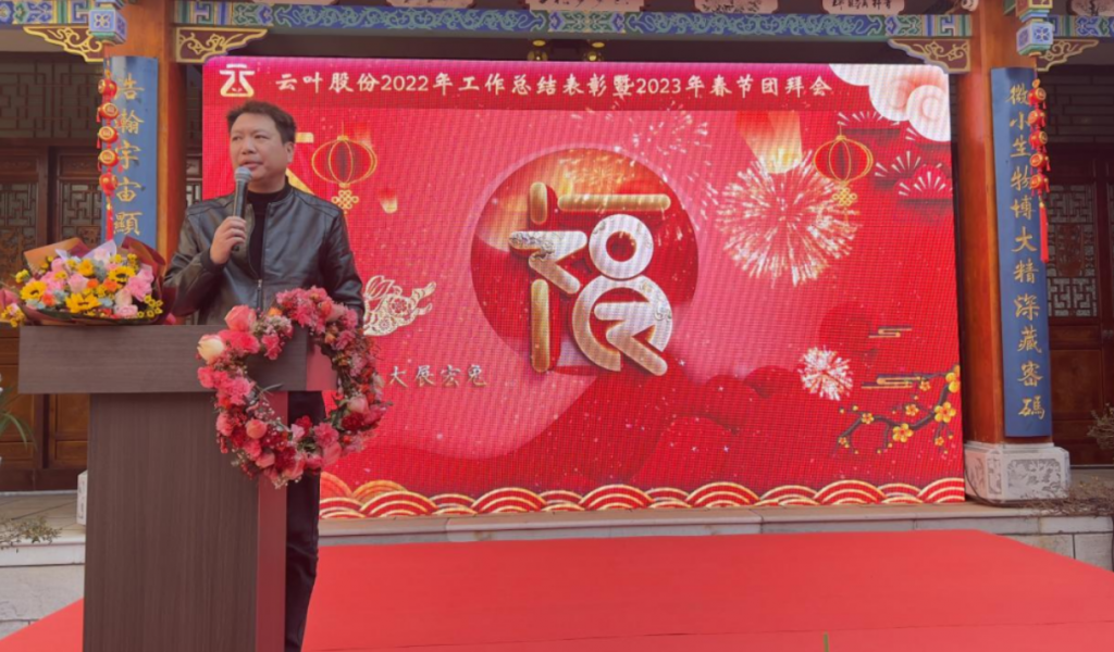 在主持人热情洋溢地主持下,“云叶股份”2022年度总结表彰暨2023年迎新春团拜会正式拉开帷幕。